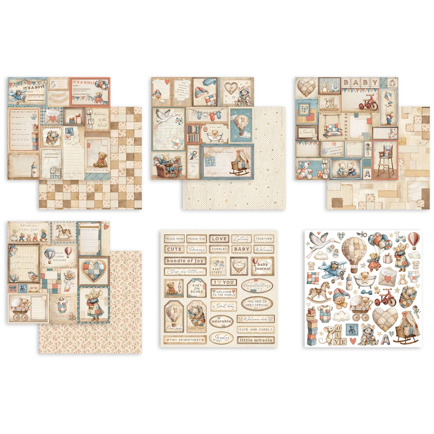 Förpackning med 4 st mönstrade, dubbelsidiga ark i 8x8" plus 2 bonus ark!Mått: 8x8"Serie: Baby