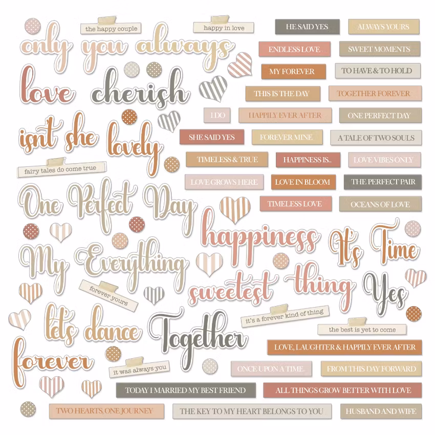 Fira er kärlekshistoria med dessa vackra utskurna ord och titlar i chipboard! Perfekt för att ge en personlig touch till bröllopsinbjudningar, scrapbooking