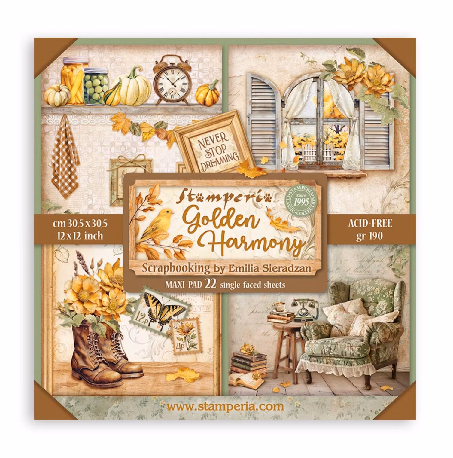 Storpack med hela 22st ensidiga, mönstrade ark Mått: 12x12"Serie: Golden Harmony