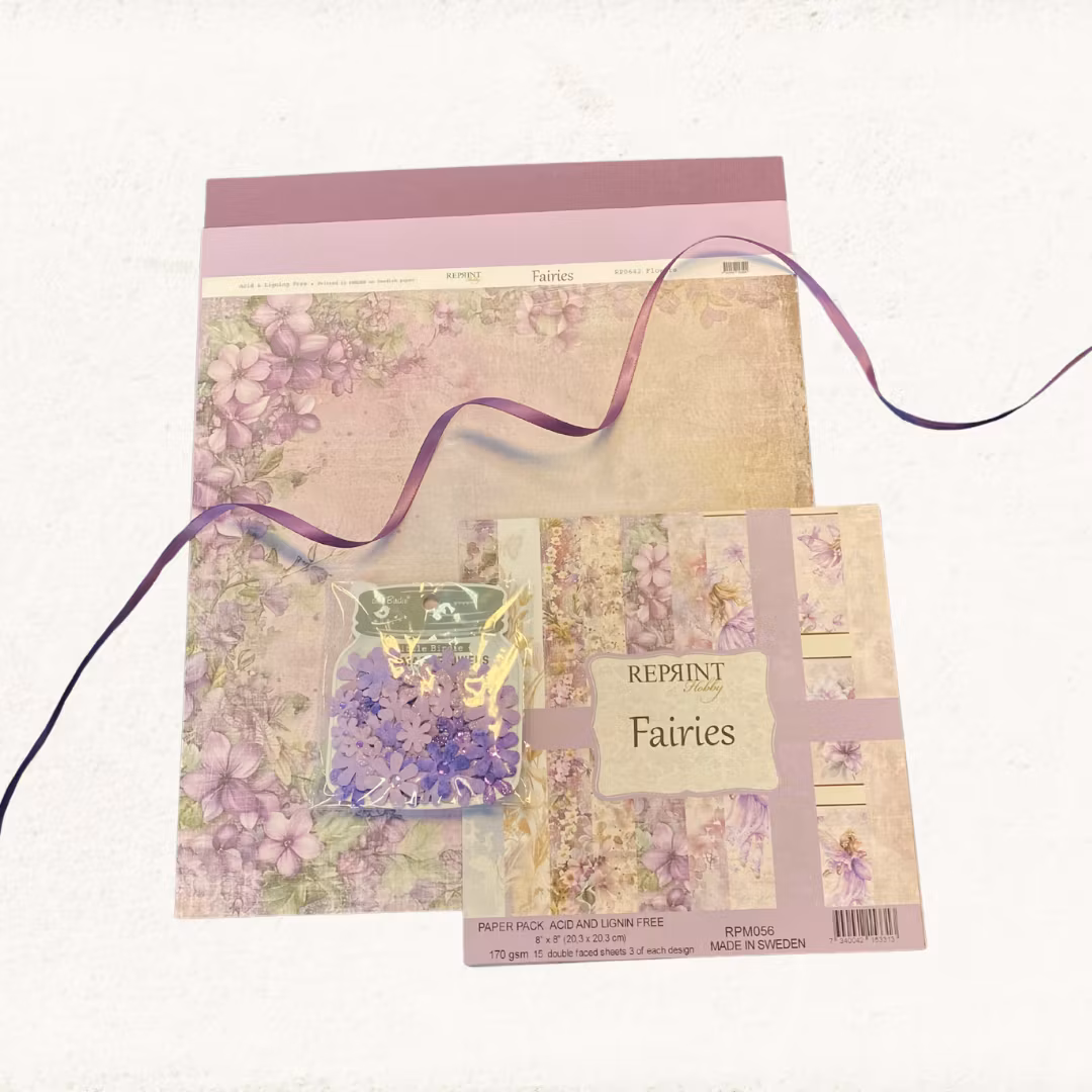 Innehåller: 2 enfärgade ark1 mönstrat ark (reprint)1 paper pack 8x8 (reprint)1 förp. blommor (little birdie)band