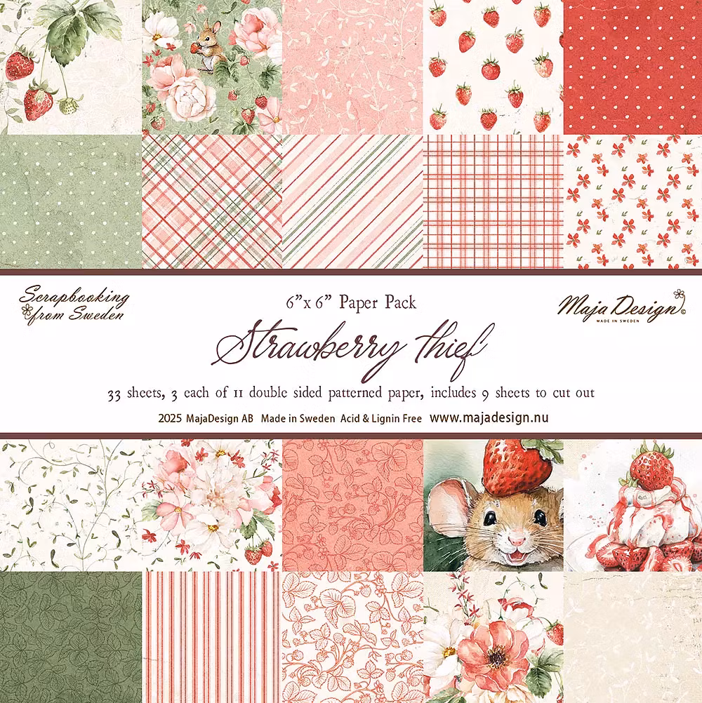 Innehåller 33 st dubbelsidiga ark (3 exemplar av 11 designs) inklusive cut out-ark. Serie: Strawberry thiefMått: 6x6"