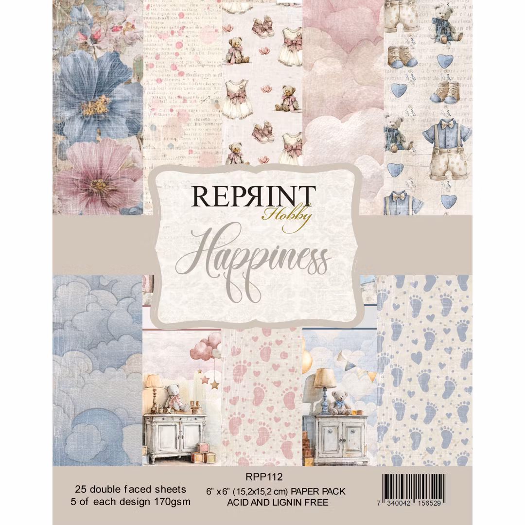 Förpackning med 25st dubbelsidiga, mönstrade ark - 5 av varjeMått: 6x6"Serie: Happiness