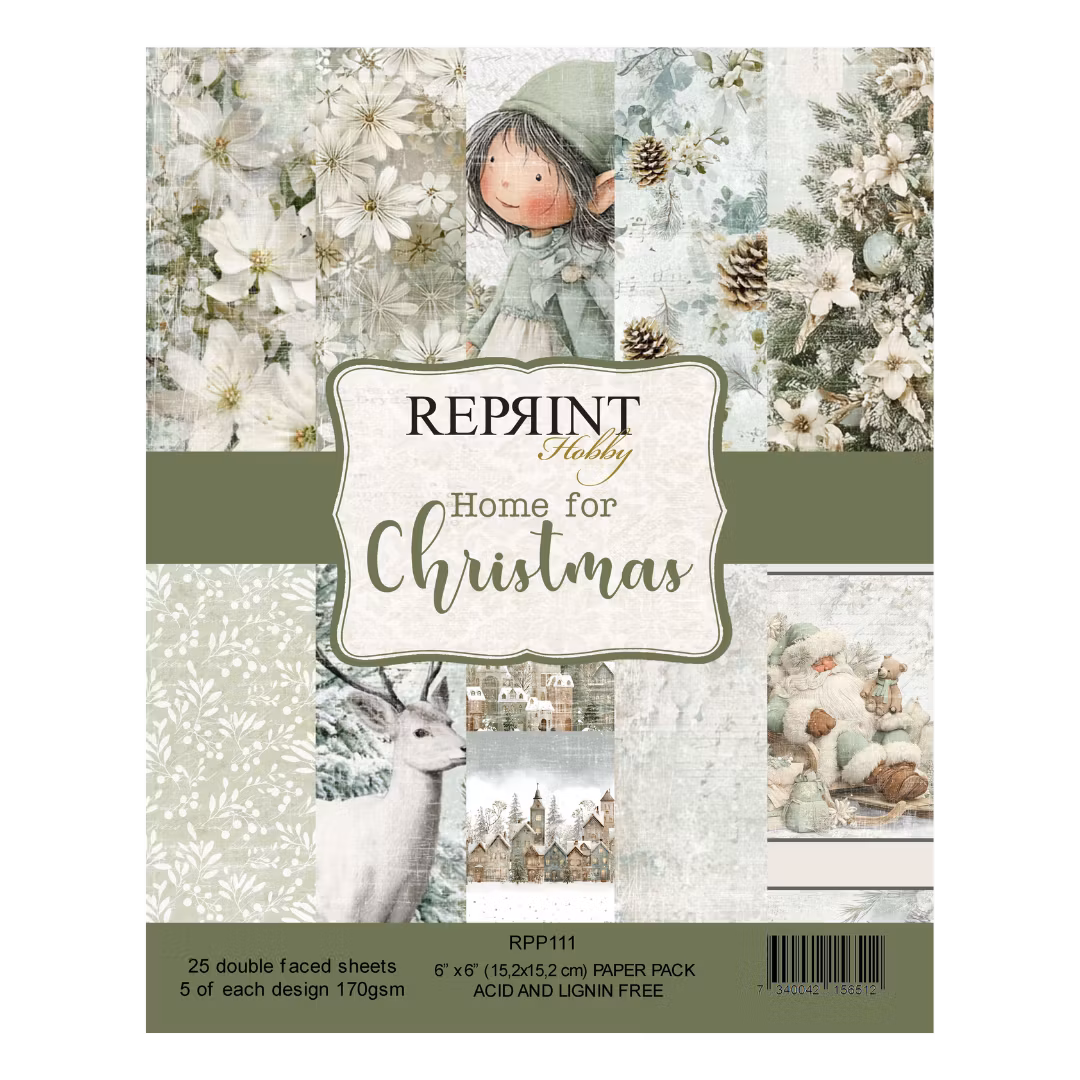 25st dubbelsidiga, mönstrade ark - 5 av varje design. Mått: 6x6"Serie: Home for Christmas