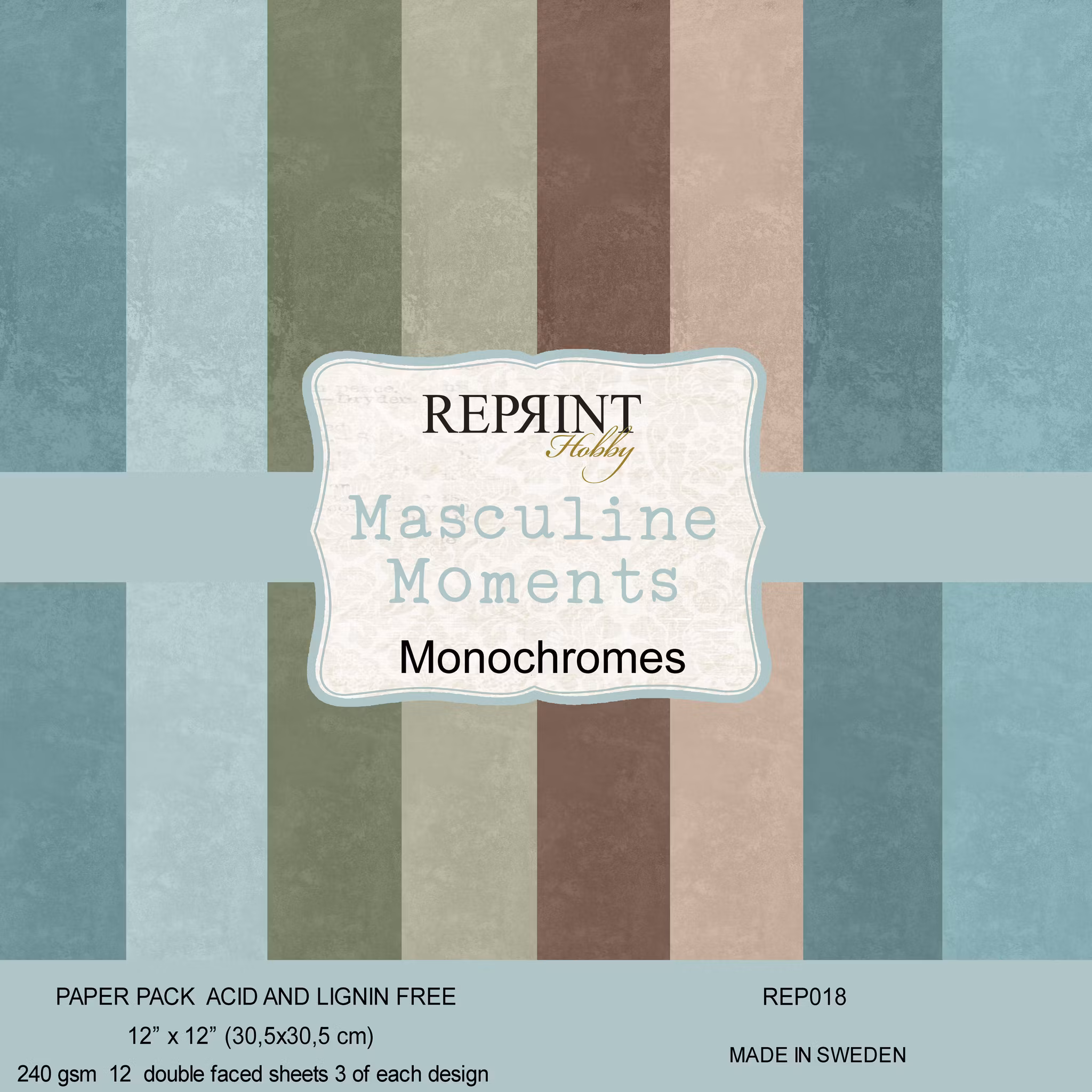 12st dubbelsidiga, enfärgade ark - 3 av varjeMått: 12x12"Serie: Masculine moments