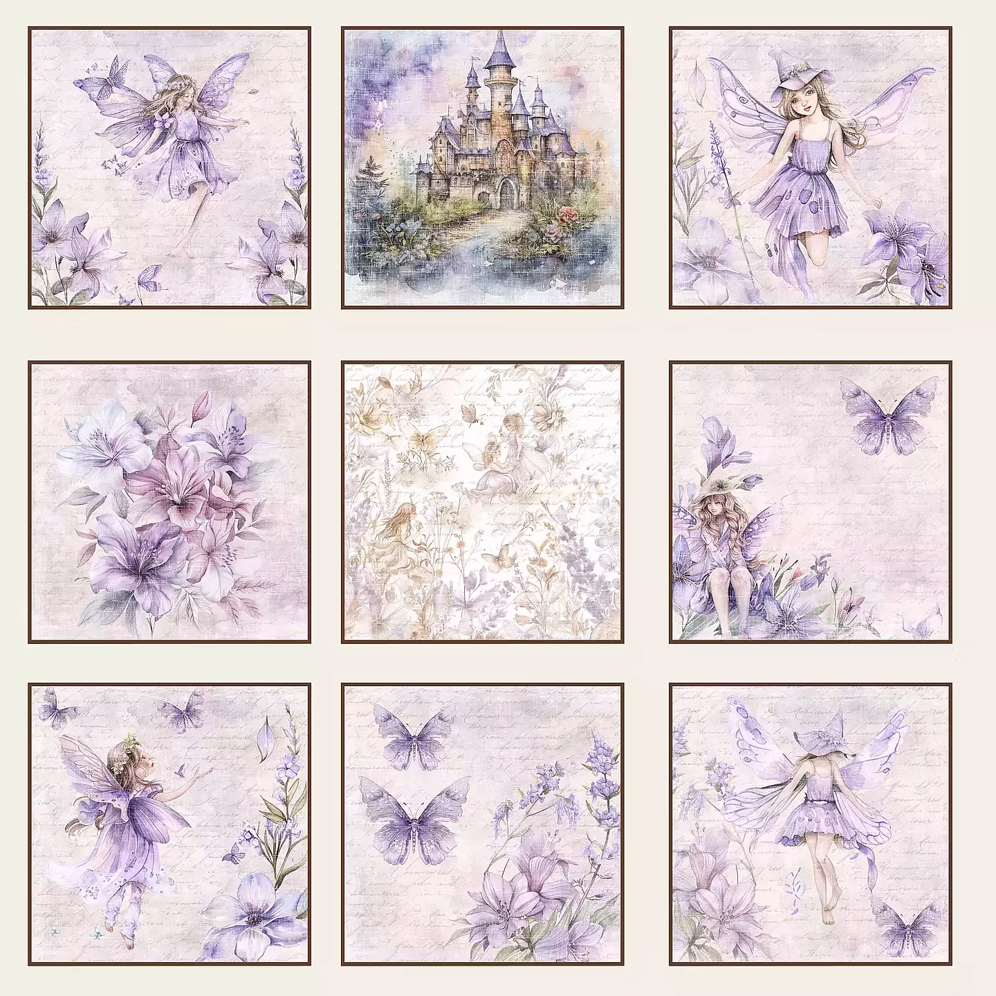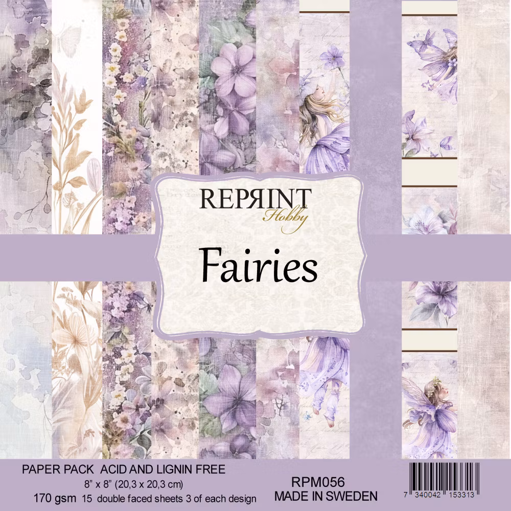 15 dubbelsidiga, mönstrade papper i 8x8. (3 av varje design). Mått: 8x8"Serie: Fairies