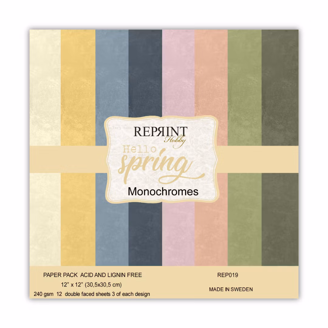 Förpackning med 12st dubbelsidiga ark, 3 av varjeMått: 12x12"Serie: Hello Spring