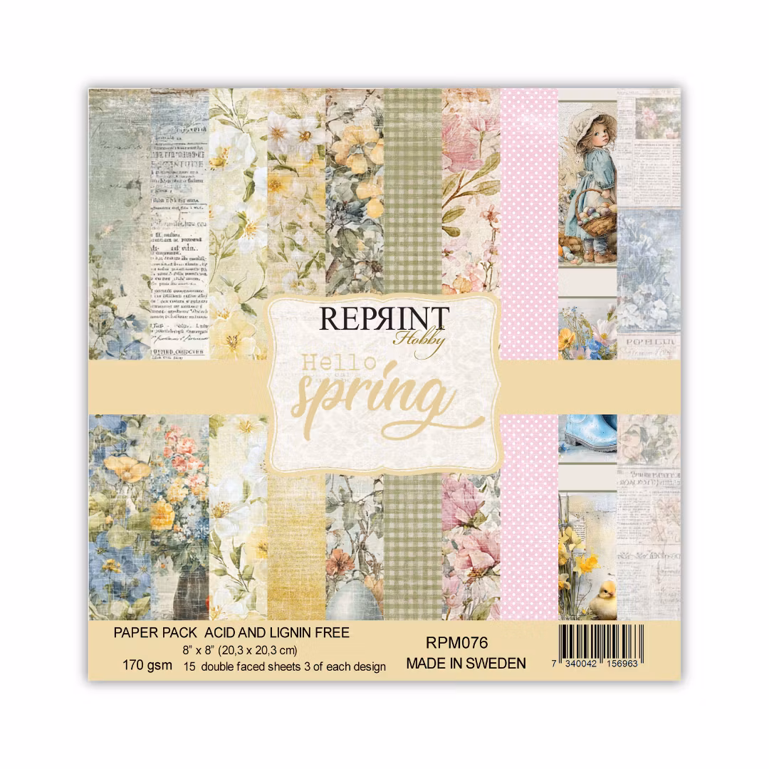 Förpackning med 15st dubbelsidiga, mönstrade ark, 3 av varje designMått: 8x8"Serie: Hello Spring