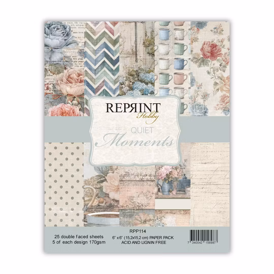 Förpackning med 25st dubbelsidiga, mönstrade ark, 5 av varje designMått: 6x6"Serie: Quiet Moments