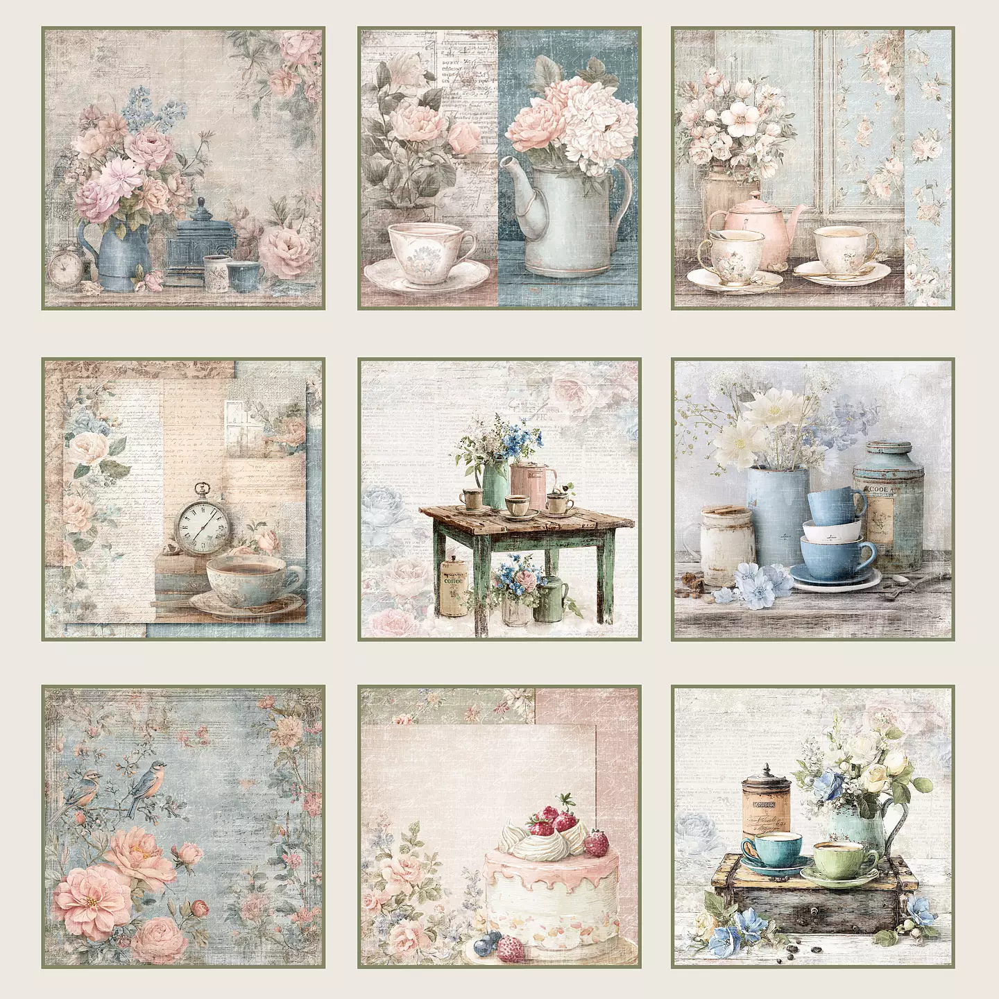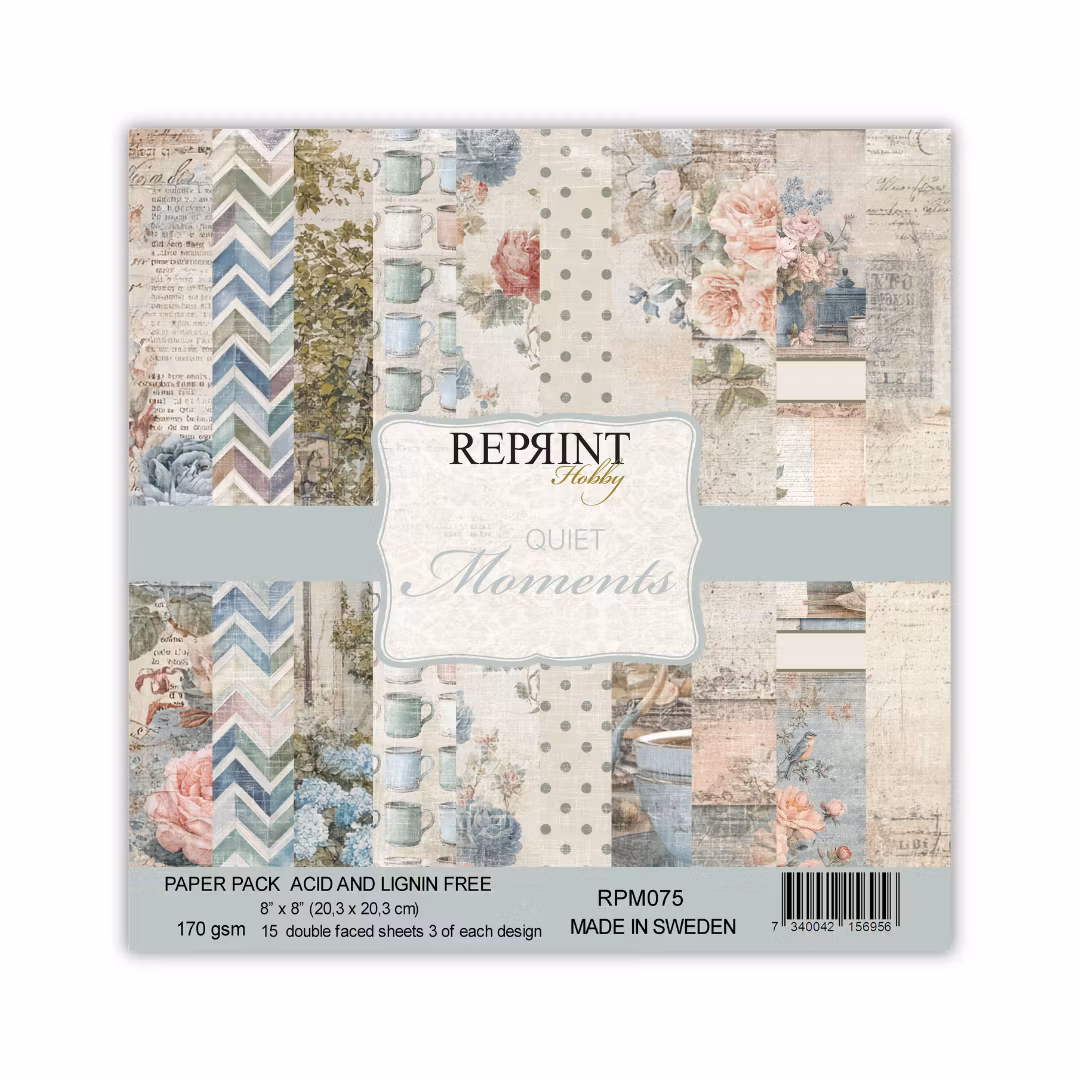 Förpackning med 15st dubbelsidiga, mönstrade ark, 3 av varje designMått: 8x8"Serie: Quiet Moments
