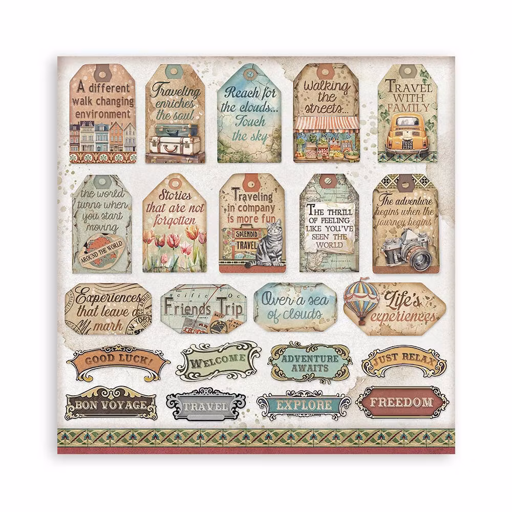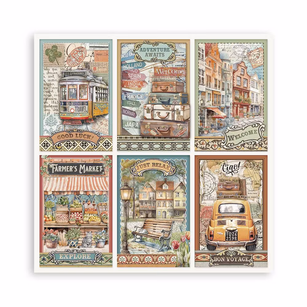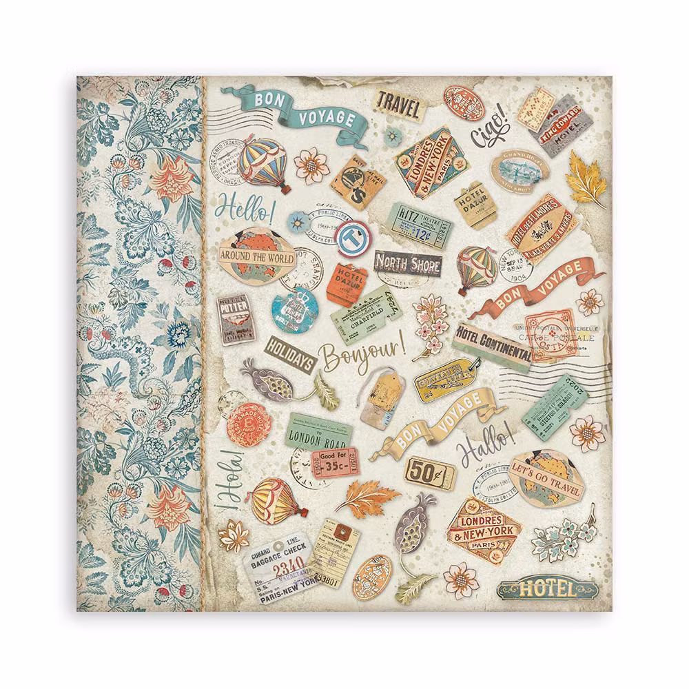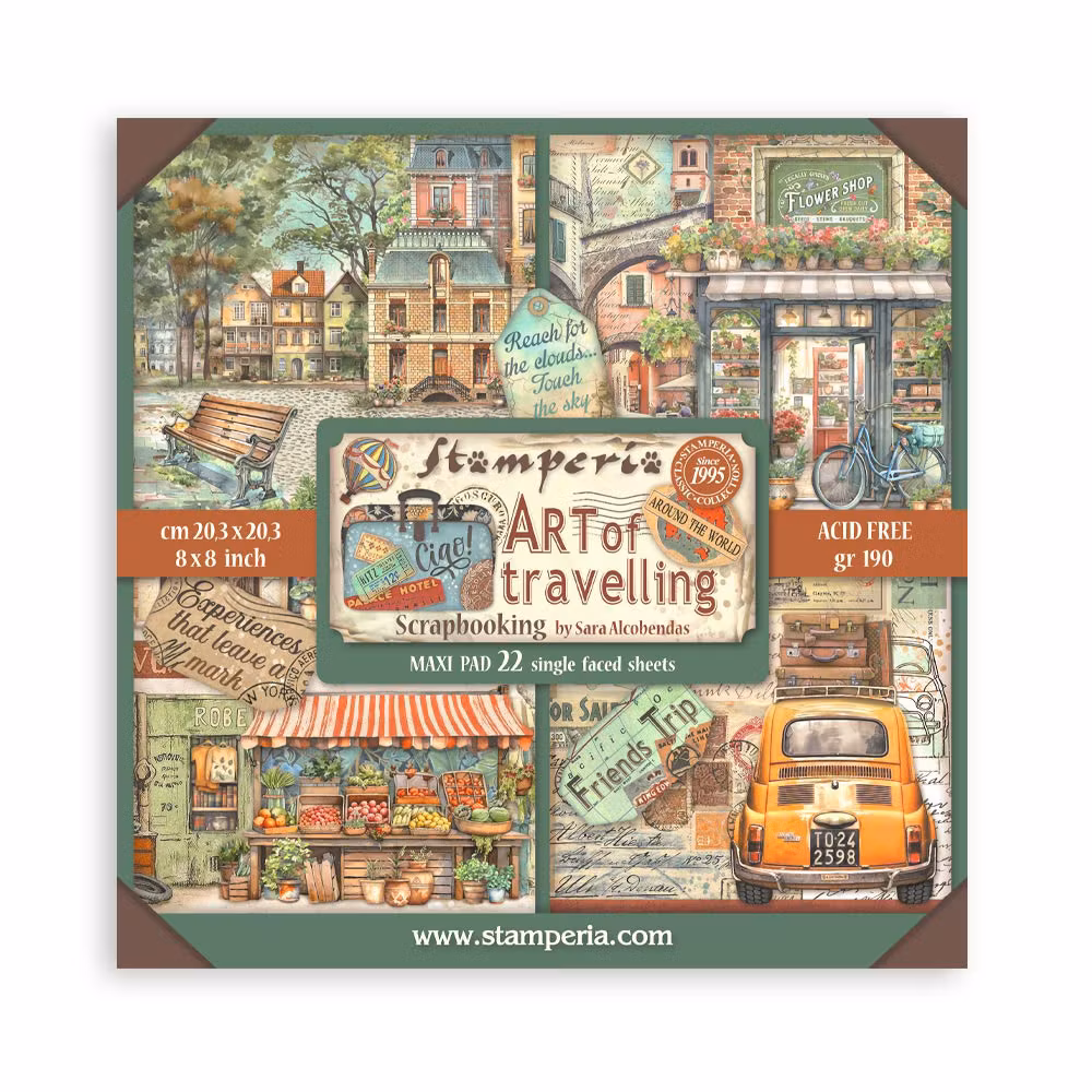 Förpackning med 22 ensidiga, mönstrade ark Mått: 8x8"Serie: Art of Travelling