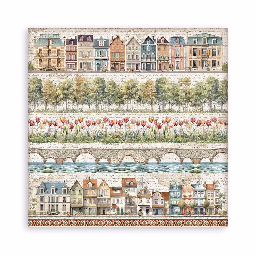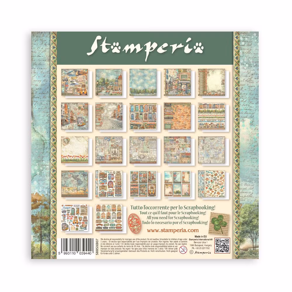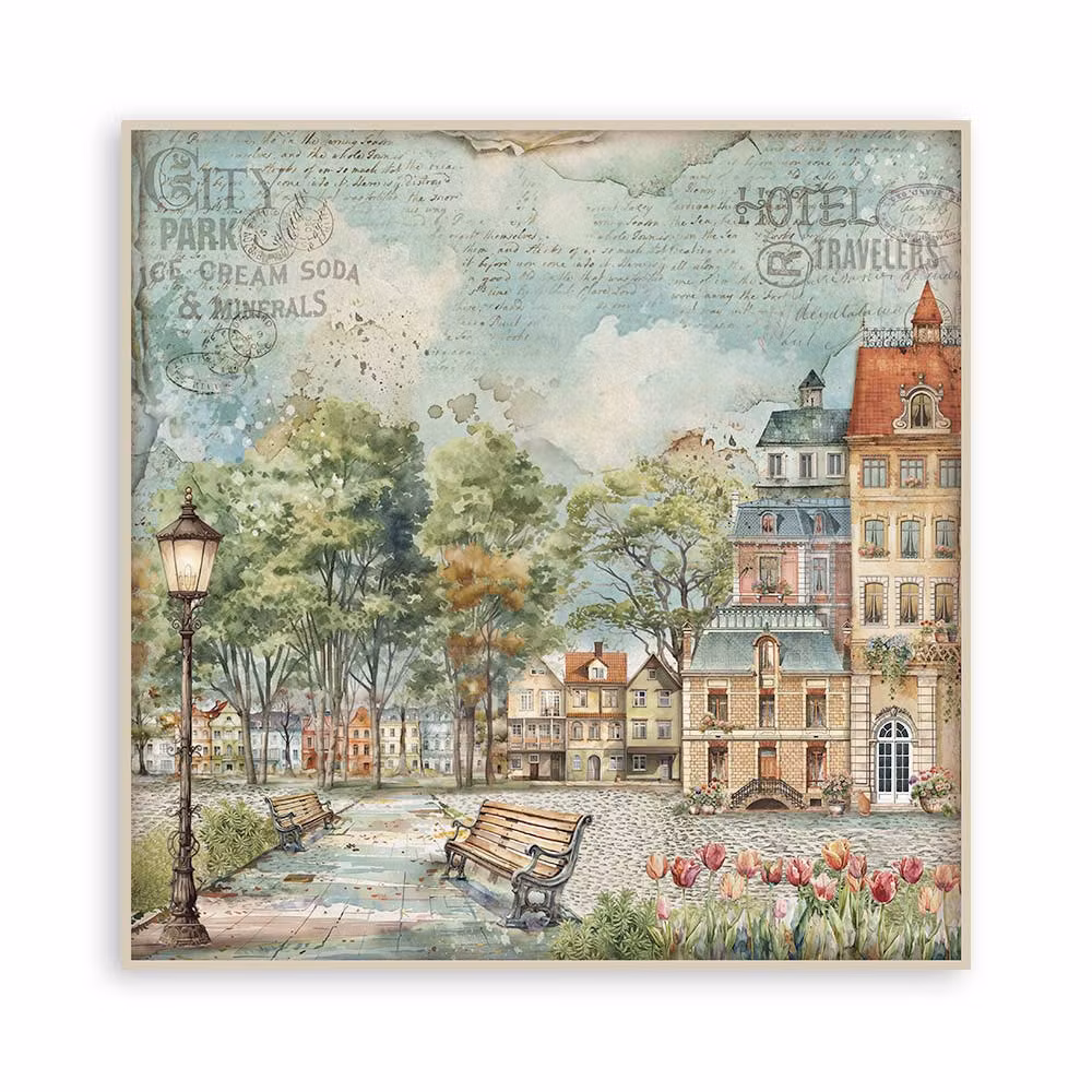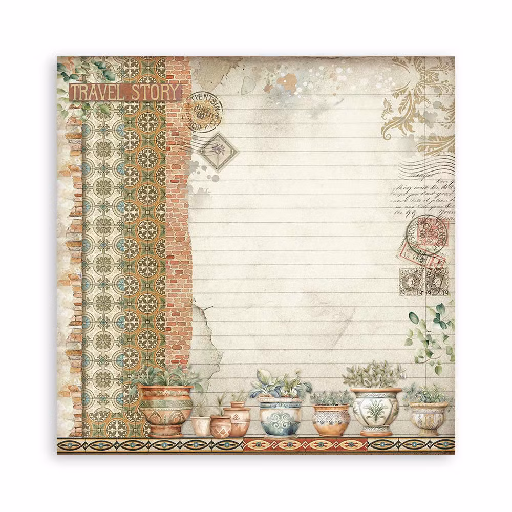 Förpackning med 22 ensidiga, mönstrade ark Mått: 8x8"Serie: Art of Travelling