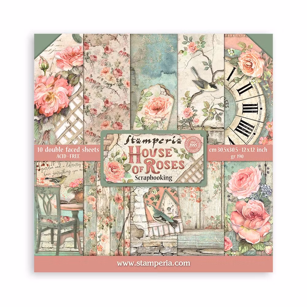 Förpackning med 10 dubbelsidiga, mönstrade ark Mått: 12x12"Serie: House of Roses