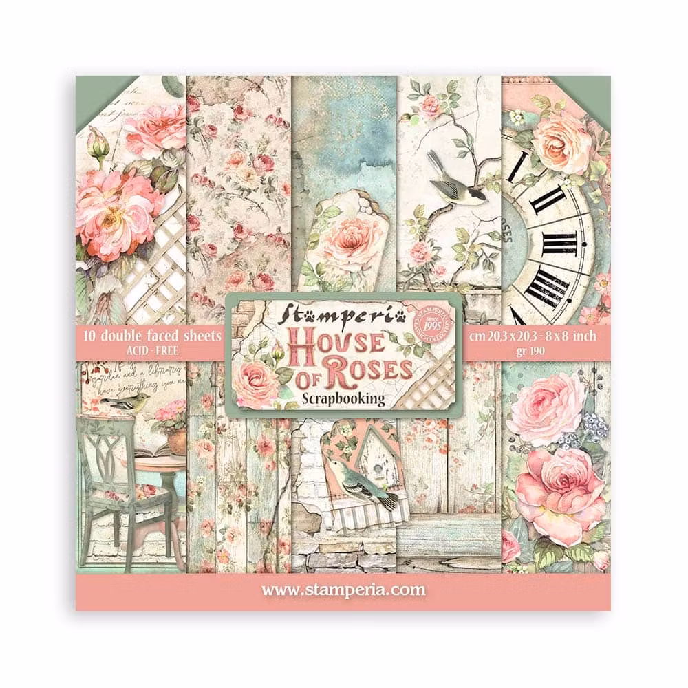 Förpackning med 10 dubbelsidiga, mönstrade ark Mått: 8x8"Serie: House of Roses