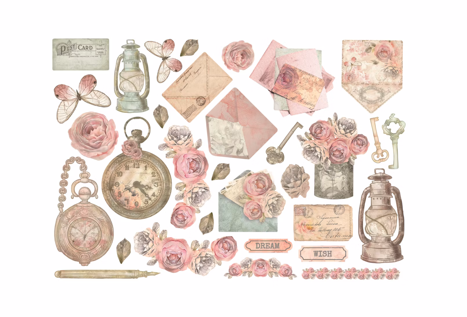 Själhäftande, utstansade figurer/dekorationer från Stamperia.
