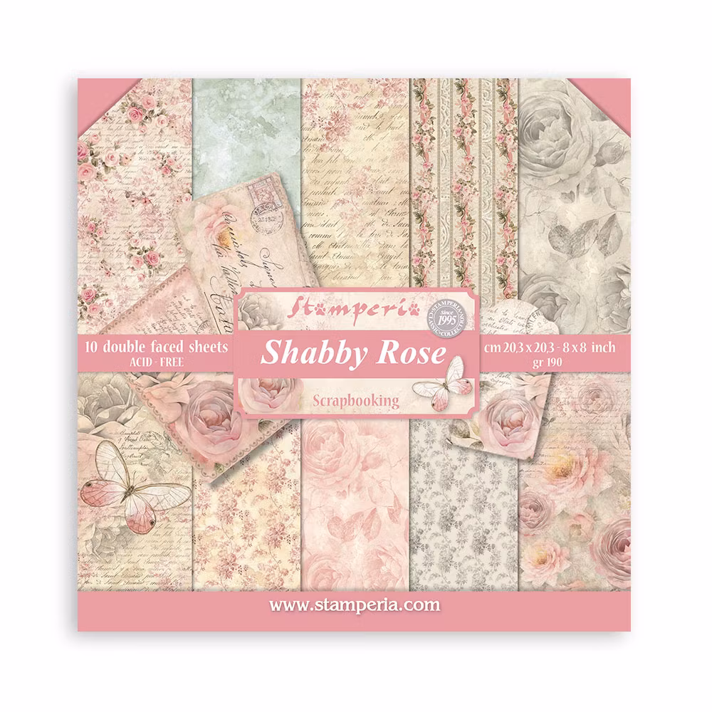 Förpackning med 10 dubbelsidiga, mönstrade ark i 8x8". Mått: 8x8Serie: Shabby Rose